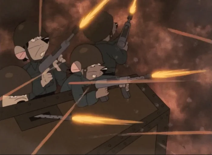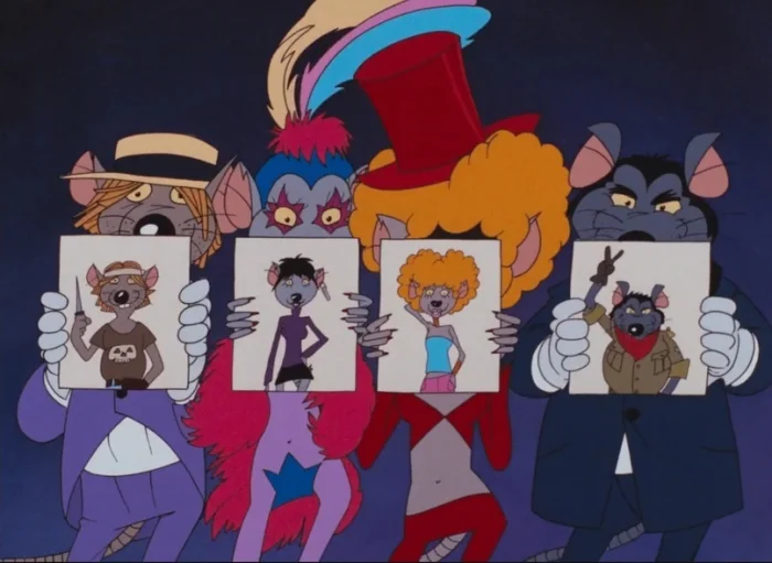 Пародийный характер фильма подчеркивает и тот факт, что мыши, крысы и коты пользуются одними и теми же зданиями и техникой, хотя разница в размерах очень велика. Тем не менее, разница в росте скачет неравномерно — где-то мышь может залезть в бутылку, из которой пила крыса, а где-то крыса только чуть больше мыши. Только соотношение коты > крысы > мыши неизменно.