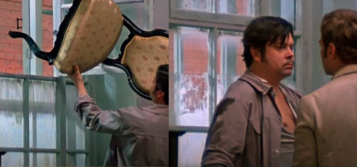7. В сцене, где Паша передает отцу Фёдору стул, окно полностью закрашено, но когда в комнату входит Бендер, окно оказывается покрашенным менее чем наполовину.
