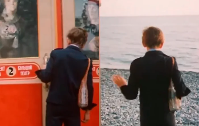 Коля входит в дверь №4, ведущую на улицу Горького, но попадает на ВДНХ.