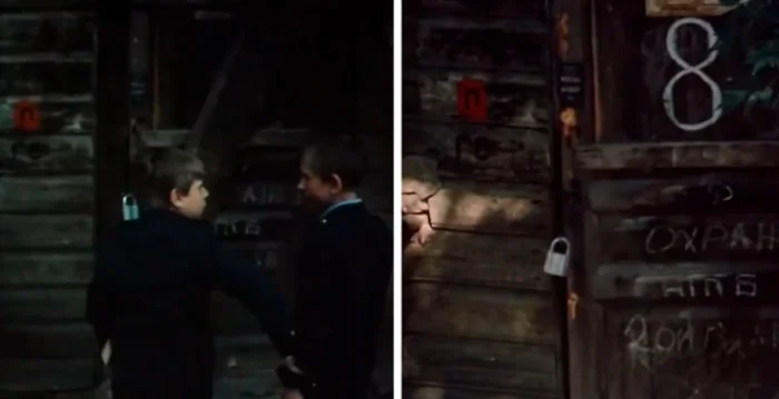 11. В начале фильма дверь в заброшенный дом приколочена какой-то доской, но когда Коля (а за ним и пираты) выбегают из этой же двери, то никакой доски уже нет. Да и цифру 8 за это время кто-то подрисовал.