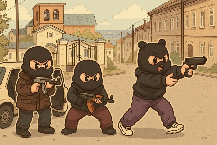 Данный материал включает в себя изображения табачных изделий, оружия и сцены насилия.