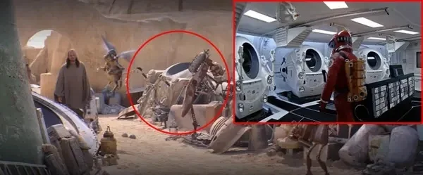 12. Хотя Стэнли Кубрик отдал приказ уничтожить все декорации и реквизиты после завершения съемок "Космической одиссеи 2001" (1968), в "Звёздные войны. Эпизод I: Скрытая угроза" (1999) можно заметить, что на свалке космического металлолома бесхозно лежит одноместный челнок из фильма Кубрика.