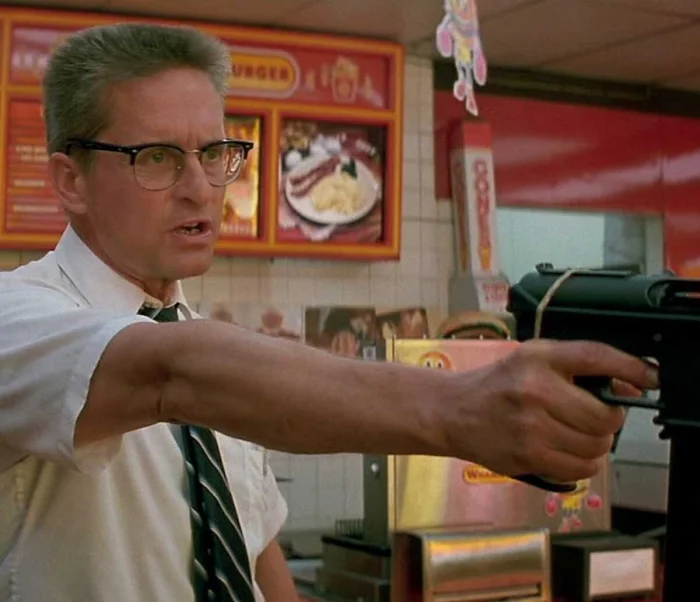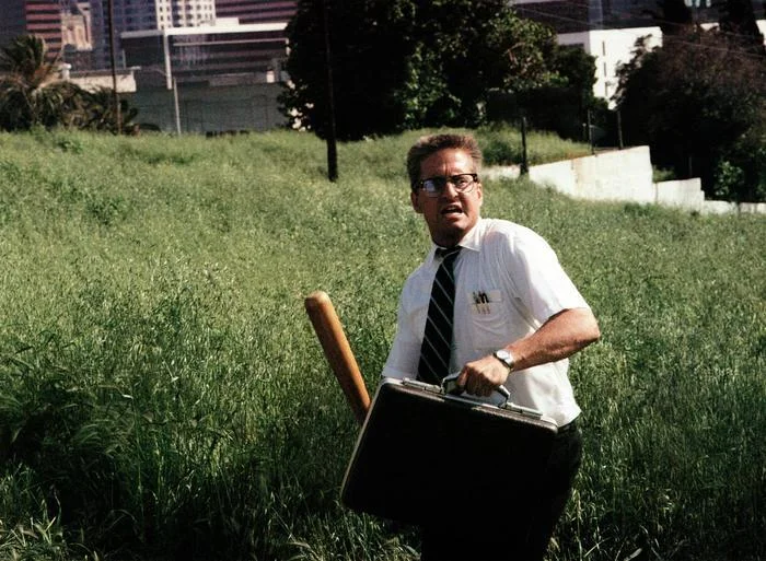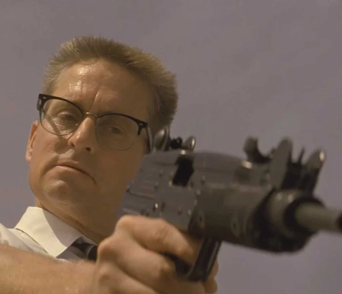 11. Внешность героя Майкла Дугласа придумал режиссер Джоэл Шумахер. Главный герой фильма был назван крайним воплощением понятия «сердитый белый мужчина» (en:Angry white male) (американский стереотип белого консерватора).