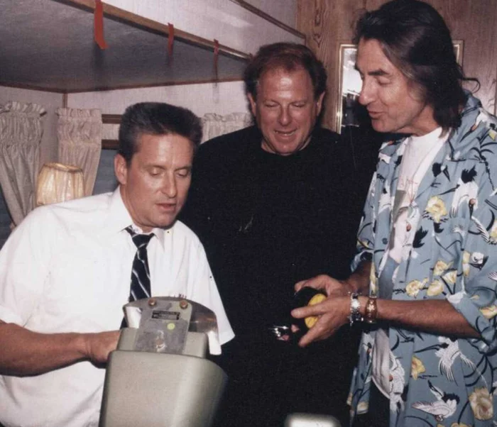 Майкл Дуглас, продюсер Арнольд Копельсон и режиссер Джоэл Шумахер на съемках