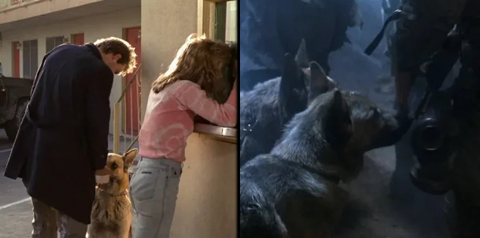 Во флэшбеках Кайла Риза показан небольшой отрезок его времени, которое он провел в Сопротивлении. Так, в одном небольшом фрагменте можно заметить, что у Сопротивления есть специально обученные собаки, которые нюхают руки вернувшихся с задания бойцов, чтобы дать понять, есть ли среди них замаскированный терминатор. Оказавшись в прошлом, Кайл встречает собаку у мотеля и по привычке дает ей понюхать свою руку. Интересно, что именно эта собака впоследствии своим лаем дала понять Кайлу, что рядом находится Т-800.