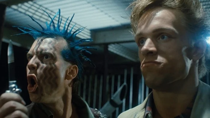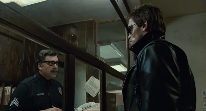В начале фильма Т-800 встречает трех панков и тот, которого играет Билл Пэкстон, произносит фразу наподобие «иди к черту». В результате Т-800 забрал не только одежду, но и фразу панка с синими волосами. Через некоторое время, когда Т-800 оказывается в мотеле, к нему стучится уборщик и зритель видит сцену от первого лица. Тогда-то и видно, что Т-800 перед ответом выбирает нужную фразу из небольшого перечня, в который вошли: «да/нет», «или что?», «проваливай», «пожалуйста, вернитесь позже» и та самая фраза панка, которую Т-800 запомнил на подходящий случай.