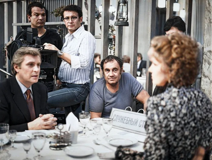 Олег Басилашвили и Эльдар Рязанов на съемках фильма "Вокзал для двоих", 1982 год.