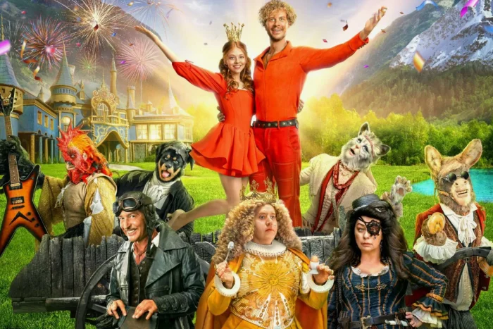 Друзья отрицали все законы королевства, колесили по городам на телеге-чемодане, раздавали рок, побеждали разбойников мирными методами и вместо заманчивых сводов дворцов неизменно выбирали свободу. И хотя это вроде как старомодное королевство, музыканты поют в микрофоны, их голоса усиливают новомодные колонки, а от электрогитар тянутся толстые провода.