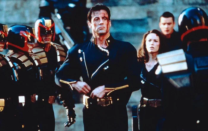 Город-колосс, полиция-суд на месте, мегастильные доспехи и слипшиеся небоскрёбы. Комикс-экранизация неидеальна, но в ней много того «пластикового будущего», которое в 90-е казалось правильной эстетикой. У нас Дредда знали прежде всего как образ — маска, фраза «I am the law!» и грубая правда мира без апелляций.