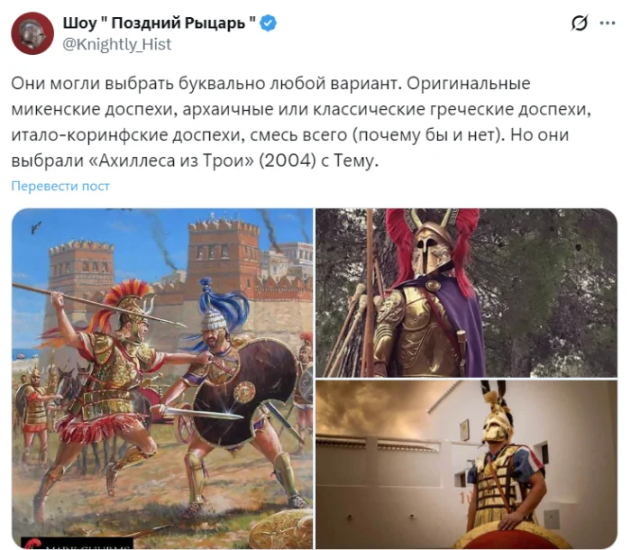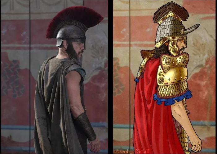 Этот феномен проявляется и здесь. Доспехи Деймона выглядят для современного зрителя убедительнее, чем аутентичные яркие доспехи Ахейской Греции.