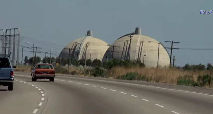 12. Дребен и Хокен проезжают мимо атомной электростанции, чьи очертания напомнили главному герою формы его супруги. В действительности актеры не снимались на фоне этой станции – ее отсняли отдельно и затем интегрировали в сцену при помощи монтажа.