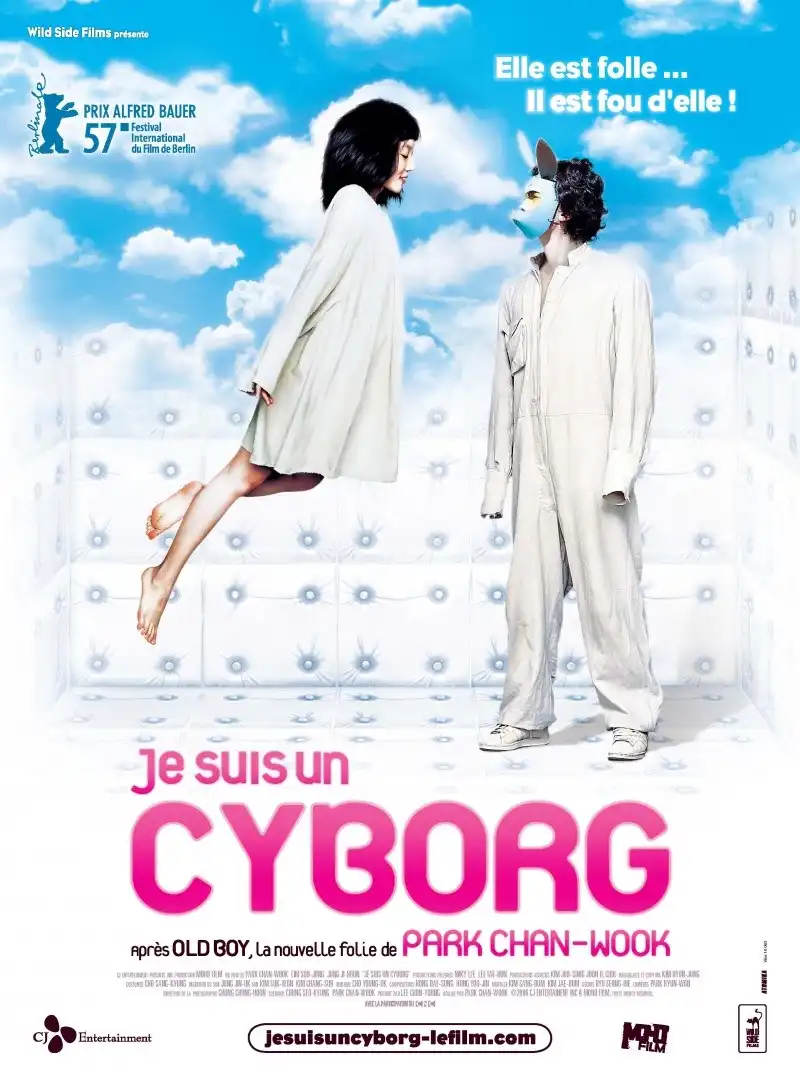 Будущая обитательница дома умалишенных Юн-гун решила, что она — киборг. Киборги живут на батарейках, им не нужно есть рис. Поэтому девушка и не ест, а подзаряжается от радиоприемника. И вопреки усилиям персонала тощает на глазах, может даже умереть от истощения. И умерла бы, кабы не товарищ по несчастью Иль Сун-пак, который решил, что он профессиональный вор и умеет украсть человеческую индивидуальность. А раз умеет красть, значит, умеет и возвращать — он и вернет девушке Юн-гун способность есть рис и подзарядит ее батарейки любовью. Это, так сказать, сюжетная канва. Есть вокруг и быт человеческого безумия с его абсурдами. Персонажи дурдома не патологичны — просто человеческие качества в них выражены в чистом виде, как это бывает в зверушках: незамутненное простодушие или склонность к тайным, но всем очевидным интригам. Обстановка по чистоте красок почти из мультфильма. Есть, конечно, и неизбежная кровища, но смешно избыточная, как в "Килл-Билле": у девушки-киборга из пальцев вырастают пистолетные дула, во рту бренчит патронный барабан, и она без всяких на то оснований все время расстреливает окружающих. Этот мотив девушки-автомата, как рассказал режиссер, впервые возник в его сне, навеянном, возможно, все тем же Тарантино.