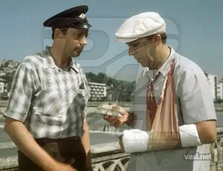 - На съемках в Туапсе был еще один забавный эпизод, - рассказывает оператор Игорь Черных. - В нем с Папанова рыболовным крючком стаскивают трусы. Снималась эта сцена примерно в километре от пляжа. День был солнечный, загорало полно народу. Но ни сторонние люди, ни дамы из съемочной группы не смутили Анатолия Папанова, на котором из одежды остался только акваланг.