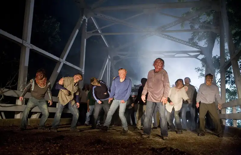 Но и это еще не все о странном и кошмарном, настолько же любопытном, насколько провальном проекте Grind House. Новеллы предваряются фейк-трейлерами, которые сняли разные режиссеры. Собственно, эти трейлеры — лучшее во всем проекте. «Мачете» Родригеса с неподражаемым Дэнни Трехо в роли мексиканца-мстителя. «Женщины-оборотни СС» Роба Зомби — название говорит само за себя. «День благодарения» Эли Рота, отсылающий к фильмам о маньяках, преследующих сексуально озабоченных подростков. И «Не надо» Эдгара Райта — все штампы о привидениях в трехминутной упаковке.