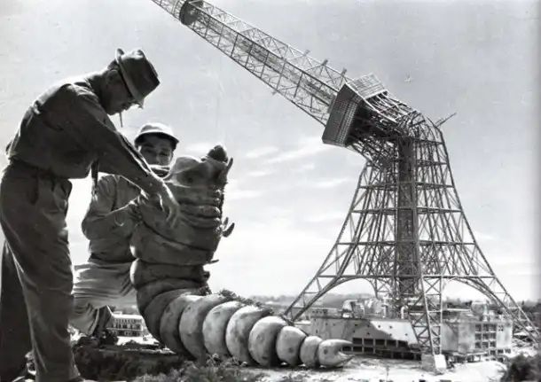 На съёмках «Мотра» (1961) – режиссёр по спецэффектам Цубурая Эйдзи