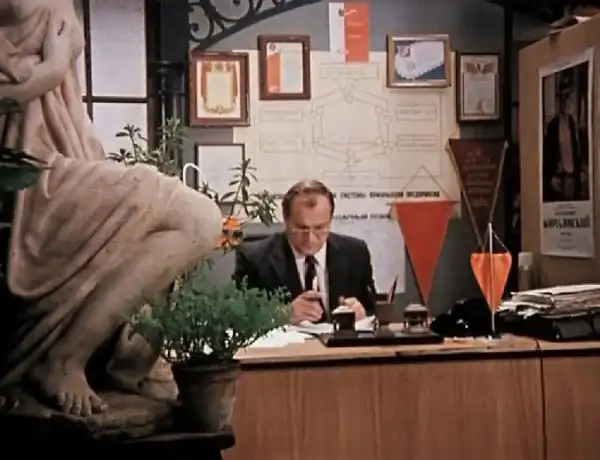 Слева от Олега Федорова (Издателя) в картине «Мой ласковый и нежный зверь» 1978 года