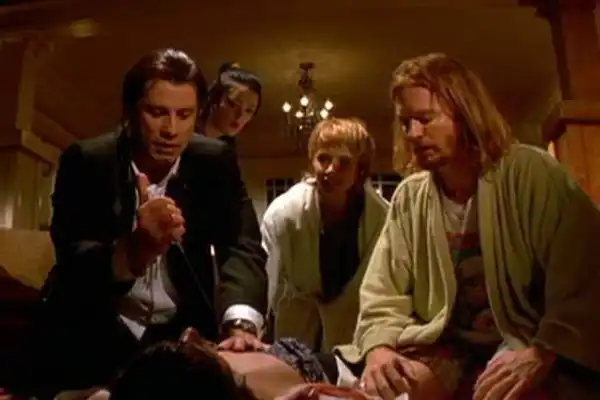 Сцену инъекции адреналина в сердце Мии смонтировали задом наперёд. На самом деле Джон Траволта не втыкал шприц, а отдёргивал. Потом плёнку запустили в обратную сторону, добавили страшный звук и получился зверской силы удар. Кроме того, перед тем как сделать Мии укол адреналина, Винсент ставит ей на груди красную отметку маркером. Но после укола красная отметка исчезает.