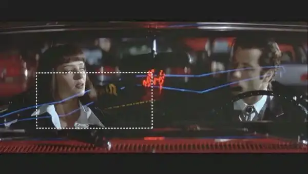 В диалоге на парковке у кабака Jack Rabbit Slims Миа предлагает Винсенту не занудствовать. При этом говорит "Don't be...", а в воздухе чертит прямоугольник. Целиком предложение не занудствовать звучит как «Don't be square» (дословно — "не будь квадратом"), но показывает вместо этого прямоугольник. Многие эксперты полагают, что тут явная ошибка, но на самом деле square — он и квадрат, и прямоугольник тоже. Плюс square — это площадь, а для русских ещё и сквер.