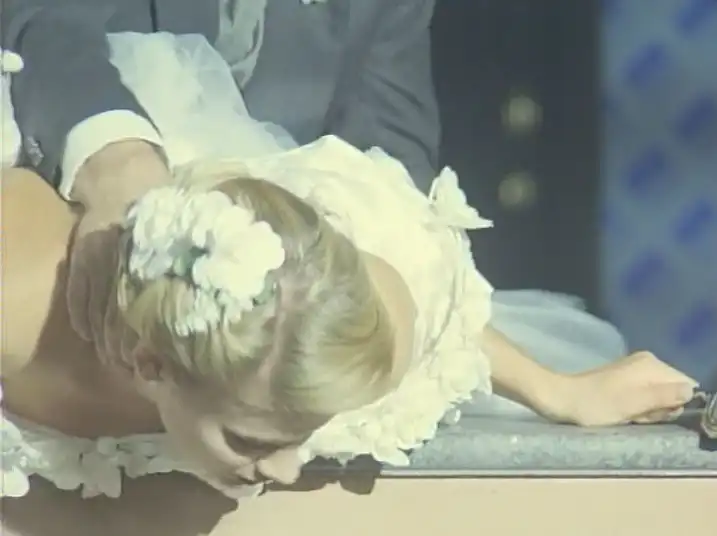 Тинто Брасс — признанный мастер и ценитель эротического жанра, а «Подглядывающий», на мой взгляд, лучший его фильм. И не в последнюю очередь — благодаря этой шедевральной сцене. Сильвия, шикарная блондинка, готовится выйти замуж. Одетая в свадебное платье, она сидит на балконе второго этажа дома, красит свои чувственные губы и поглядывает на своего жениха Эдуардо, который внизу добродушно спорит с полицейскими. Она чуть перегибается через перила, чтобы лучше рассмотреть происходящее у крыльца дома, и тут в комнату входи отец жениха — благообразный старик в стиле Лучано Паваротти. Он молча подходит к Сильвии сзади, задирает ей платье и расстегивает ширинку брюк. Эдуардо внизу показывает полицейским на Сильвию: «Вон же она, моя красавица-невеста!» и не знает, что в этот момент ее, властно держа рукой за шею, трахает его собственный отец. Из-за сильных толчков сзади из волос Сильвии выпадает один из белых цветочных лепестков и, красиво кружась, опускается к ногам Эдуардо.