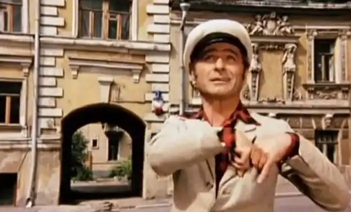 Кадр из фильма "Иван Васильевич меняет профессию". Дом, в котором жили Шурик, Бунша и Шпак. Отсюда же режиссер Якин стартовал на отдых в Гагры.