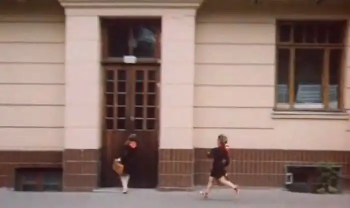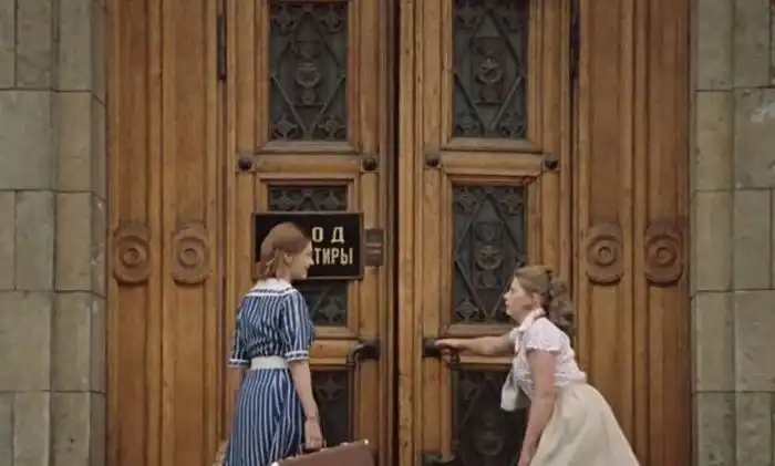 7 Кадр из фильма "Гостья из будущего". Подъезд дома, в котором жила подружка и одноклассница Алисы Юля Грибкова. Дом 28 в Гагаринском переулке, где по сюжету жила Юля Грибкова.