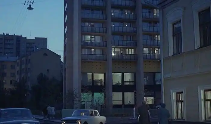Кадр из фильма "Служебный роман". Здесь жила главная героиня Людмила Прокофьевна Калугина. Калугина жила в многоэтажке, но в хорошем районе.