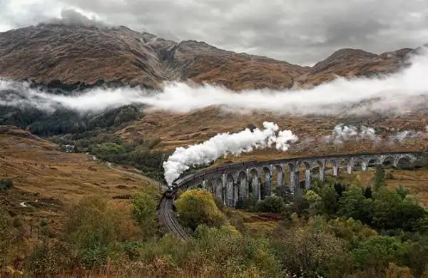 Конечной станцией в нашей прогулке становится западная Шотландия, где находится виадук Гленфиннан, более известный всему миру, как знаменитый железнодорожный мост на пути в Хогвартс. Несмотря на то, что последний фильм вышел два года назад, сюда до сих пор каждый год стекаются тысячи поклонников. И их можно понять: глядя на Гленфиннан, веришь, что магия действительно существует.