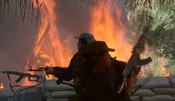 Специально нанятый военный инструктор гонял киношных коммандос по 50 километров пешком, утомлял многочасовыми силовыми упражнениями, заставлял карабкаться по деревьям в джунглях. Из-за сложной пересеченной местности чуть ли не каждую сцену приходилось снимать по шесть-восемь раз, прежде чем получалось что-нибудь достойное.