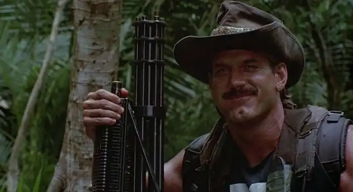 Забавно, но самым невероятным в «Хищнике» члены съемочной группы называли не пришельца, а… шестиствольный пулемет, с помощью которого бравый американский спецназовец поливает джунгли свинцом.