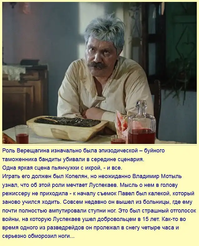 Этот пост расскажет вам о неизвестных доселе подробностях съемки 11-го дубля (эпизод со старым таможенником Верещагиным) легендарного советского фильма «Белое солнце пустыни».