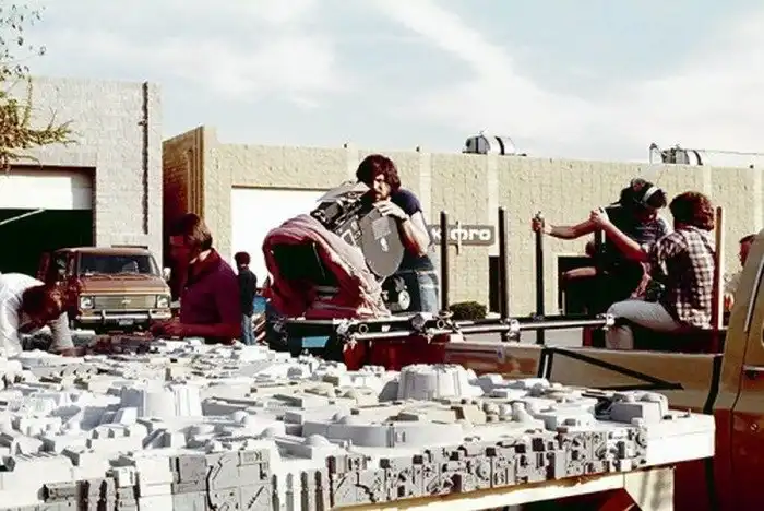 Мы уже показывали вам, как снимают современные фильмы с использованием зеленного экрана, сейчас же мы вернемся в 1977 год и покажем, как снимались фильмы до появления этой технологии. Перед вами кадры со съемочной площадки «Звездных войн».