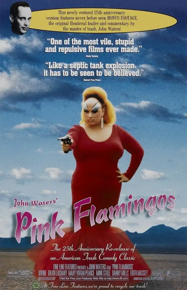 Фильм знаменитого кинопровокатора Джона Уотерса о девиантных развлечениях двух семеек слабоумных фриков строго не рекомендуется для просмотра любителям «клубнички»: ваши нервы могут не выдержать увиденного. Поскольку режиссер, по собственному признанию, добивался от аудитории не оваций, а рвотной реакции (на премьере зрителям даже раздавали гигиенические пакеты), то и методы у него соответствующие: секс с участием раздавленных кур, дефекация и мастурбация, поедание одним из персонажей собачьего дерьма, минет матери собственному сыну. То, что «мать» играл знаменитый трансвестит Дивайн (настоящее имя — Харрис Глен Милстед), приятности картине не доставляет; впрочем, при всей своей непотребности сексуальная составляющая все же несколько меркнет на фоне какашек, которые Дивайн, согласно его интервью разных лет, то ли ел, то ли не ел. В итоге режиссер положил конец кривотолкам, ответственно заявив, что ввиду практически нулевого бюджета на реквизит и дублеров у него финансов не имелось. Так что все было «по чесноку» (за исключением разве что каннибализма), и несчастные куры, увы, тоже умерли по-настоящему.