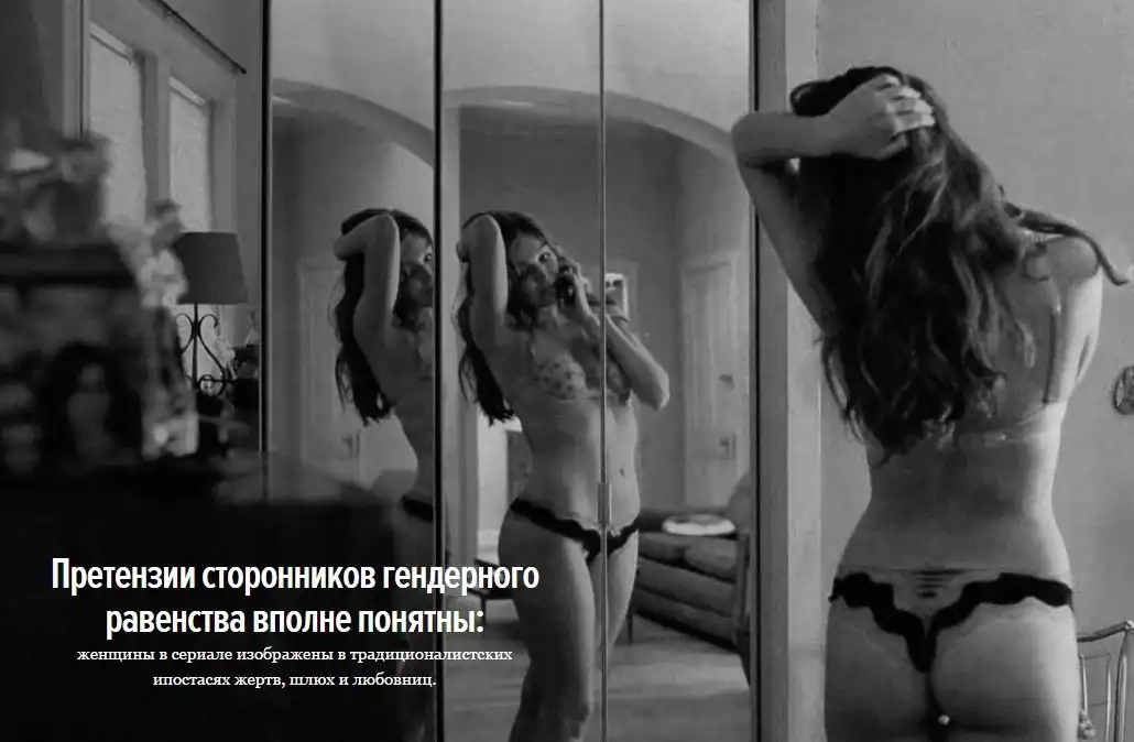 «Настоящий детектив» впрямую указывает на некоторый гендерный перекос и женоненавистничество современной культуры, за что он уже успел получить свою порцию критики. Женские персонажи сериала представляют парад злобных мегер, любовниц, проституток, сумасшедших в психушке или просто трупов. Женщины шоу низведены либо до роли жертв, либо до второстепенного объекта сексуальных желаний. Жена Харта, Мэгги (Мишель Монахан), впервые появляется в сериале в нижнем белье и спиной к камере, которая подчеркивает ее наготу. Актриса Александра Даддарио сама понимает, что запомнится миру лишь той самой сценой. Еще одна героиня сериала появляется в кадре лишь для того, чтобы сначала раздеться, а потом разрушить жизнь Харта. Даже во вступительных титрах зрителям больше всего запомнился БДСМ-образ танцовщицы в туфлях с шипами (который оказался снимком фотографа из Санкт-Петербурга). На самом деле, авторы сериала признавались, что с легкостью бы обошлись без откровенных сцен и что это скорее дань уважения фривольным предпочтениям канала HBO. К тому же «Настоящий детектив» — прежде всего история взаимоотношений двух детективов, и вполне логично, что в такой структуре повествования все остальные персонажи выглядят одномерно и второстепенно относительно Коула и Харта.