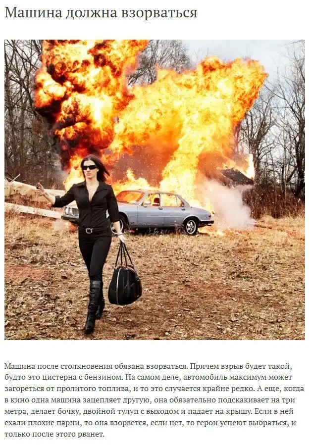 Голливуд давно уже приучил нас к тому, что автомобиль после аварии обязательно должен взорваться, а человек даже после серьезной травмы может продолжить заниматься различными делами, не прибегая к помощи врачей.