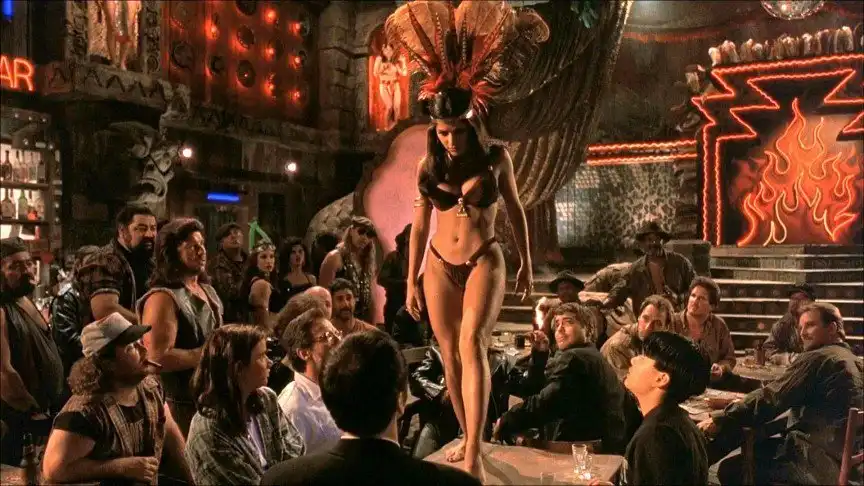 Сперва Сальма Хайек отказалась от роли, так как до смерти боялась змей. Но когда Роберт Родригез сказал ей, что роль в таком случае достанется Мадонне (он нагло врал), актриса передумала и согласилась. Ей потребовалось три месяца терапии, чтобы избавиться от страха перед змеями. Во время съемок Родригез сказал Хайек, что она должна прочувствовать музыку и двигаться под нее, как захочет сама. Так родилась одна из самых сексуальных сцен в кинематографе.