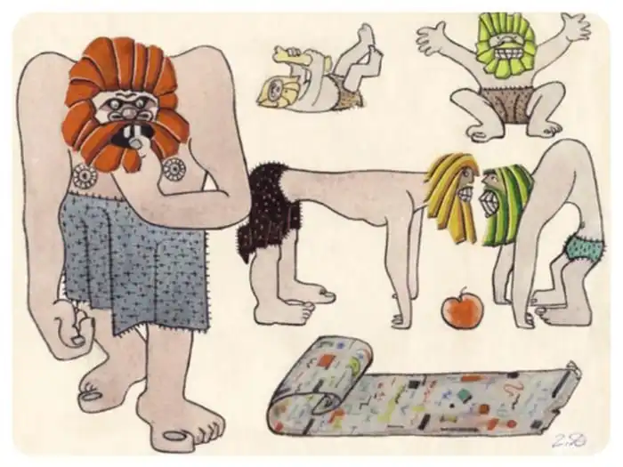 В итоге на Уэфе оказались надеты: брезентовые матросские штаны, байковая майка фирмы «Заря», полусапожки из фильма «Тиль Уленшпигель». А перед самой съемкой я нашел на помойке блямбу непонятного назначения, я ее вымыл и приклеил клеем «Момент» к заду матросских штанов чатланина.»