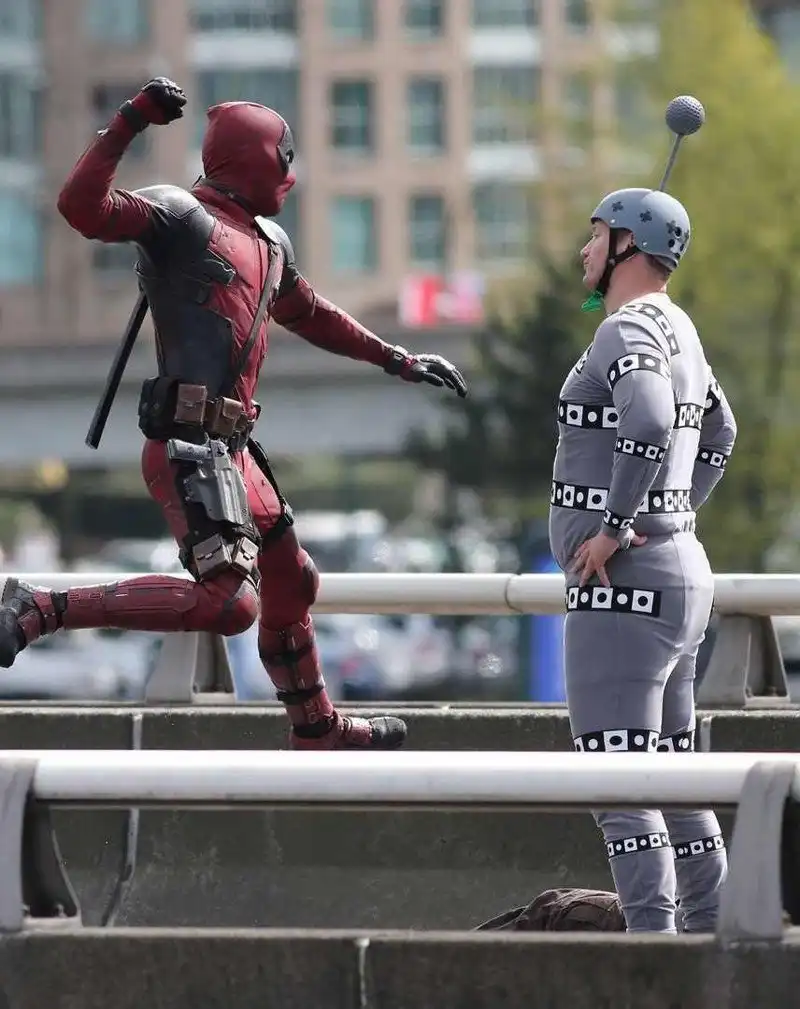 Самый позитивный аспект фильмов, сгенерированных при помощи компьютерной графики – это непосредственный съемочный процесс, который со стороны выглядит невероятно забавно. В этой сцене, например, Дедпул собирается обрушить всю свою ярость на несчастного каскадера в забавном костюме.