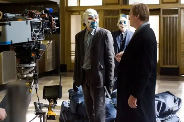 Сцена ограбления, с которой начался фильм, вышла очень напряженной и даже устрашающей. И съемки, очевидно, проходили не менее эмоционально – Джокер, например, явно взгрустнул после комментариев режиссера, а вот его дружок на заднем плане вполне доволен жизнью.