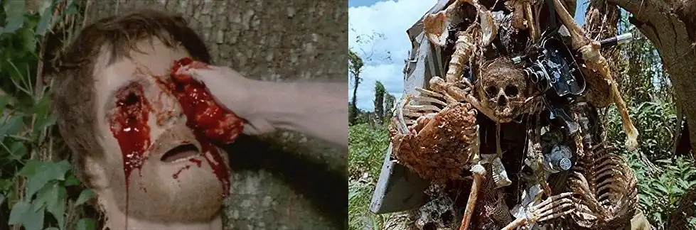 Конечно же, мы не могли обойти вниманием самый омерзительный фильм о каннибалах в истории. Он запрещен в большинстве стран из-за особенно жестоких и кровавых сцен, в том числе реальных убийств животных.