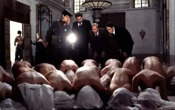 Фильм скандального Пьера Паоло Пазолини вышел на экраны в 1975 году. В его основу легла одноименная книга маркиза де Сада. Несмотря на высокие художественные достоинства, эта картина до сих пор остается одним из самых непристойных и сексуально откровенных фильмов в истории. Пытки, изнасилования, убийства юношей и девушек на потеху богатым психопатам - фильм, кажется, показывает все виды преступлений против человека, а от актов копрофагии может стошнить и самого стойкого зрителя. Из-за натуралистичных изображений изнасилований и некрофилии был запрещен в целом ряде стран Европы, включая Великобританию. Режиссера жестко критиковали за непристойность его картины, а несколько месяцев спустя Пазолини был найден убитым. Так завершился спор о праве художника на жестокость.