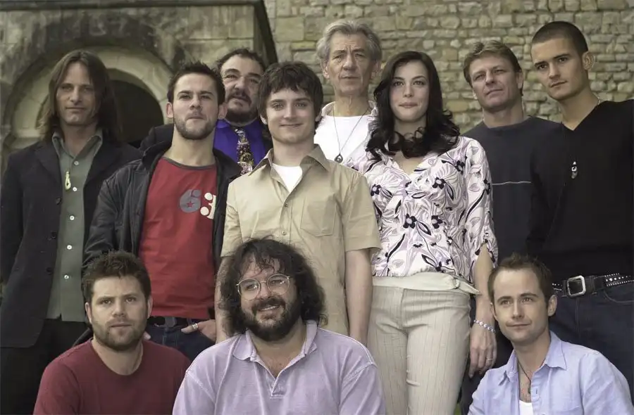 Питер Джексон, Шон Бин Иэн МакКеллен, Лив Тайлер, Орландо Блум, Джон Рис-Дэвис, Шон Эстин, Элайджа Вуд, Доминик Монаган и Билли Бойд. 2001 год