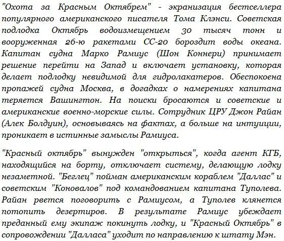 Многие истории, родившиеся на книжных страницах и позднее переселившиеся на экран, могли бы сразу появиться на свет как сценарии. «Охота за “Красным октябрем”», однако, никогда не была бы написана и снята, если бы ее автор Том Клэнси работал в Голливуде, а не в штате Мэриленд. Слишком уж долгой и основательной подготовки потребовал этот проект, и слишком уж он был концептуально сложным для голливудских продюсеров, привыкших к так называемым elevator pitch – историям, которые можно изложить за время поездки на лифте.