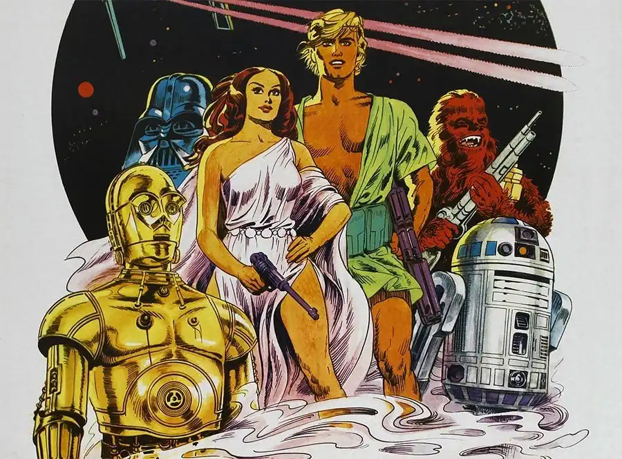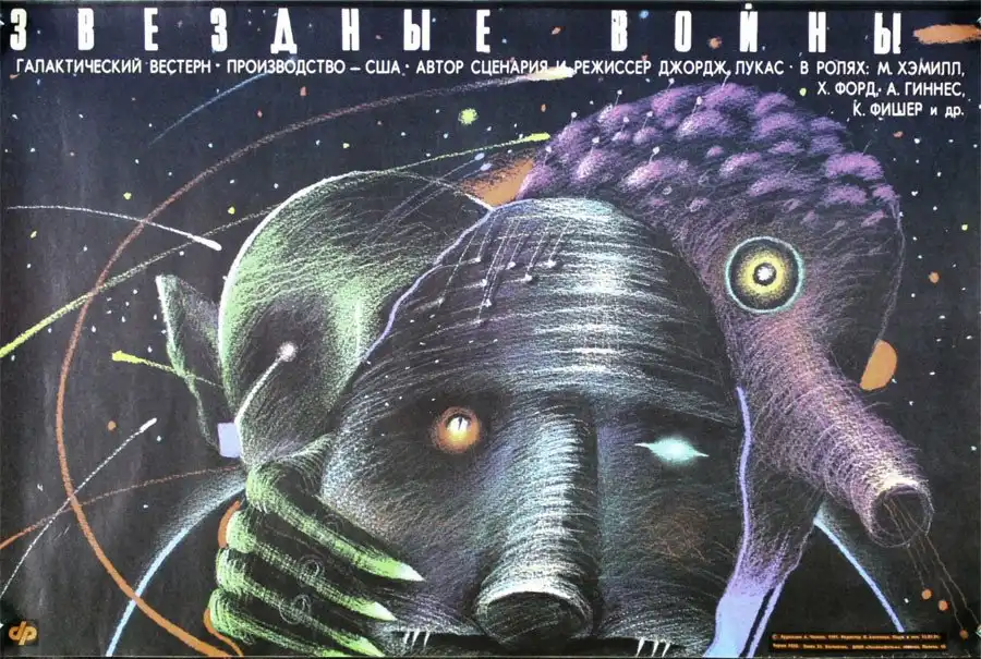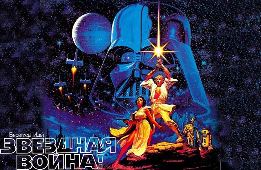 «Нынешним летом американские кинотеатры захлестнула новая волна „кинопсихоза“. По сообщению печати, фильм американского режиссера Джорджа Люкаса „Война звезд“ побивает все рекорды кассовых сборов. Итак, на смену „нечистой силе“, массовым катастрофам и гигантским акулам на американский экран пришли ужасы поистине космического масштаба — чудовищные тираны, терроризирующие нашу Галактику. Борьбу с ними ведут герои фильма — некая круглолицая принцесса, деревенский юноша, старый рыцарь Круглого стола, человек-обезьяна и два робота. Один из них, громадный позолоченный робот Трипио, наделен человеческой речью, другой, Арту-Дету, похож на автомобиль и изъясняется „звездными“ сигналами…