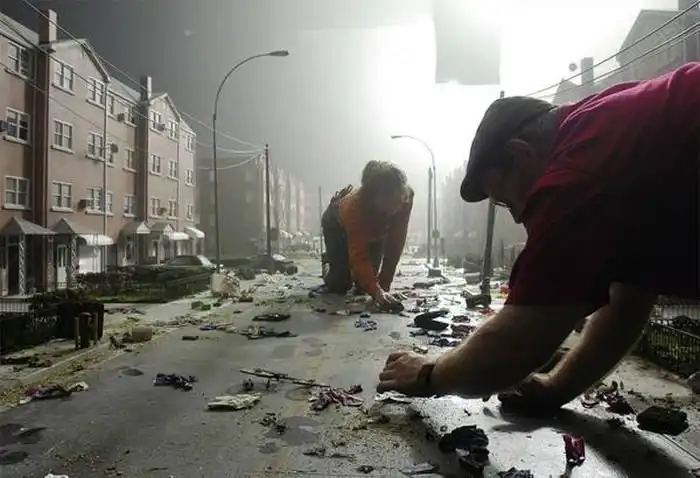 Подготовка площадки к съемкам очередной сцены из фильма «Война миров» Стивена Спилберга