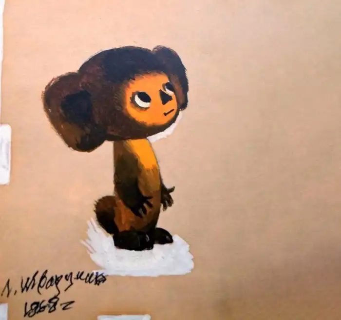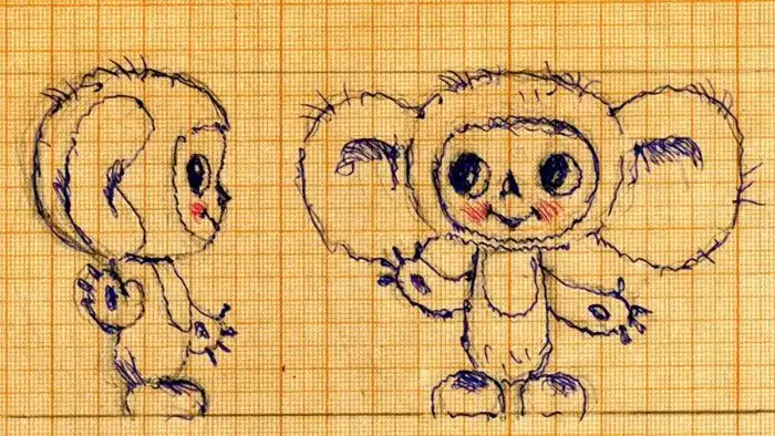 «Начал я рисовать Чебурашке уши: сначала наверху, потом они постепенно стали сползать и увеличиваться. Ко мне регулярно приходил Качанов, я показывал наброски, мы их обсуждали, спорили, он выражал свои пожелания, я перерисовывал. Благодаря таким совместным усилиям и возник окончательный эскиз. На нем, правда, у Чебурашки еще есть медвежий хвостик, который потом сильно уменьшили. И ножки поначалу были подлиннее, но Норштейн посоветовал сделать их маленькими, как сейчас. После создания эскиза в цвете я сделал чертеж, а мастера-кукольники изготовили Чебурашку, и он зажил своей жизнью».