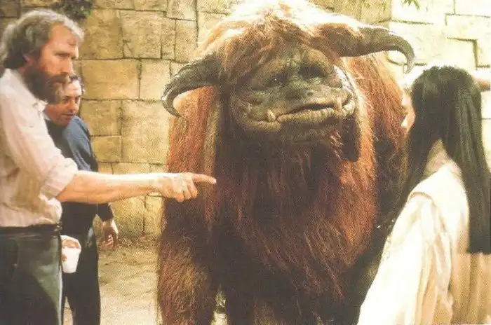 Режиссер "Лабиринта", создатель "Маппет-шоу", легендарный кукольник Джим Хенсон беседует с исполнительницей главной роли Дженниер Коннелли. Рядом стоит монстр Лудо и, кажется, тоже принимает участие в беседе. Но так только кажется: Лудо - всего лишь кукла, а не актер в гриме. Просто куклы Джима Хенсона всегда отличались поразительным жизнеподобием.