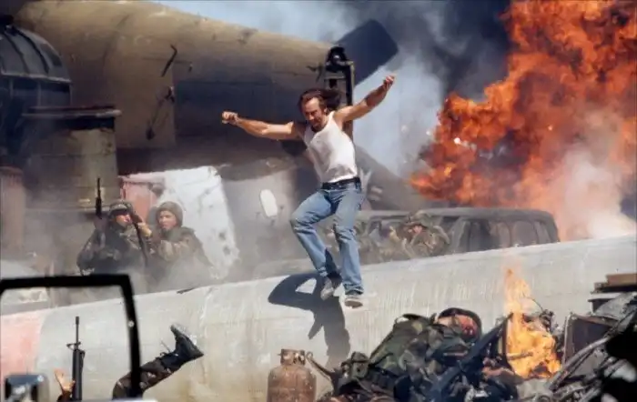 Еще молодой Слай лазит по джунглям без рубашки и с налитыми кровью глазами в поисках недобитых врагов. Это убедительно.