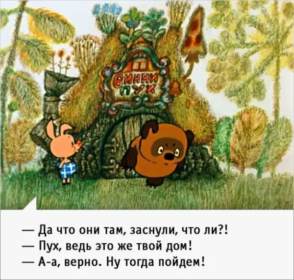 Для многих из нас образ Винни-Пуха стал по-настоящему родным и любимым, но ведь придумал его английский писать Алан Милн. Однако советскому писателю Борису Заходеру и мультипликатору Федору Хитруку удалось перевести повести «о медведе с опилками в голове» на понятный нам лад. В итоге получился отличный мультфильм, наполненный большим количеством забавных моментов и искрометных фраз, которые прекрасно помнит каждый из нас.