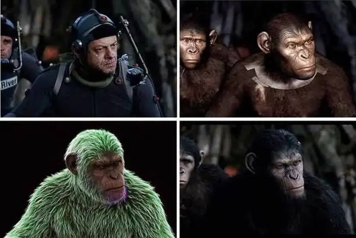 Без компьютерной графики не обходится практически ни один современный фильм. Именно она позволяет создавать невероятно реалистичные и зрелищные кадры и эпизоды, которые надолго запоминаются зрителю. Далее предлагаем взглянуть на то, какими были бы некоторые кадры из фильма «Планета обезьян: Революция» до использования компьютерной графики, и какими они стали после ее использования.
