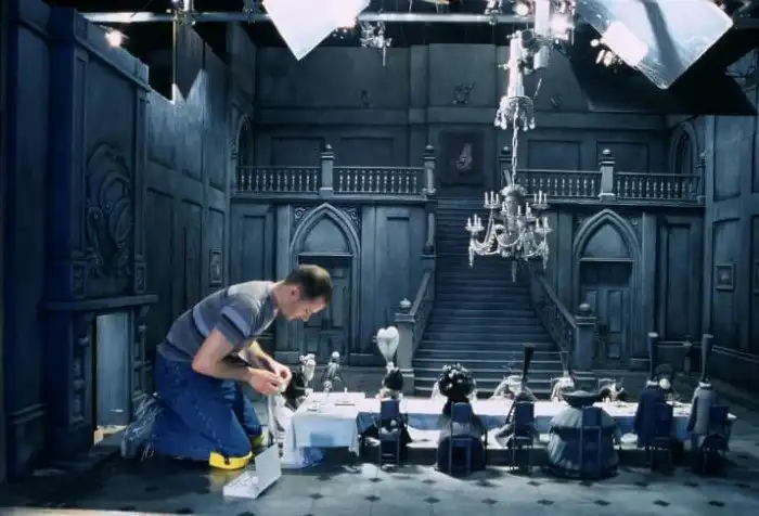 23. Член съемочной группы подготавливает сцену - "Труп невесты"